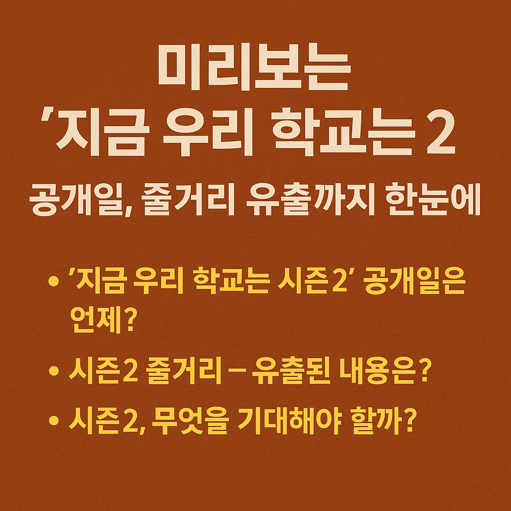 *‘지금 우리 학교는 시즌2’*는 분명 2025년 하반기 최고의 화제작 중 하나가 될 거라 생각합니다. 좀비물 팬이라면, 그리고 시즌1의 충격적 결말을 아직도 잊지 못하고 있다면 이번 시즌2는 절대 놓치지 마세요. 공개일까지 앞으로 두 달 남짓, 공식 예고편과 추가 정보도 나오면 바로바로 업데이트해서 공유드리겠습니다.