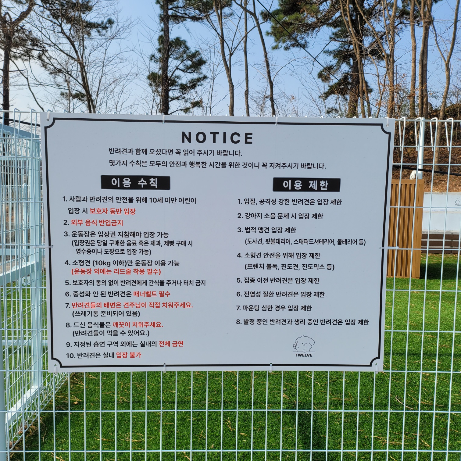 투웰브의 강아지 운동장은 음료나 빵을 구매하면 무료로 이용할 수 있어요